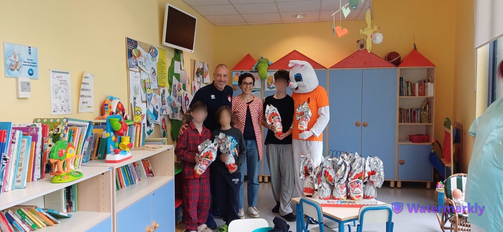 Il coniglio Bunny porta le uova di Pasqua ai piccoli del reparto pediatrico del San Jacopo grazie ai Cuori Arancioni