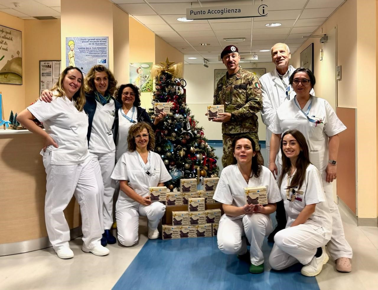 Durante questi giorni che ci stanno conducendo alle festività natalizie il 183° reggimento paracadutisti Nembo si è fatto promotore di una donazione di “Babbo Natale” di cioccolato ai bambini dei reparti di pediatria dell’Ospedale San Jacopo di Pistoia e dell’Ospedale Santo Stefano di Prato.