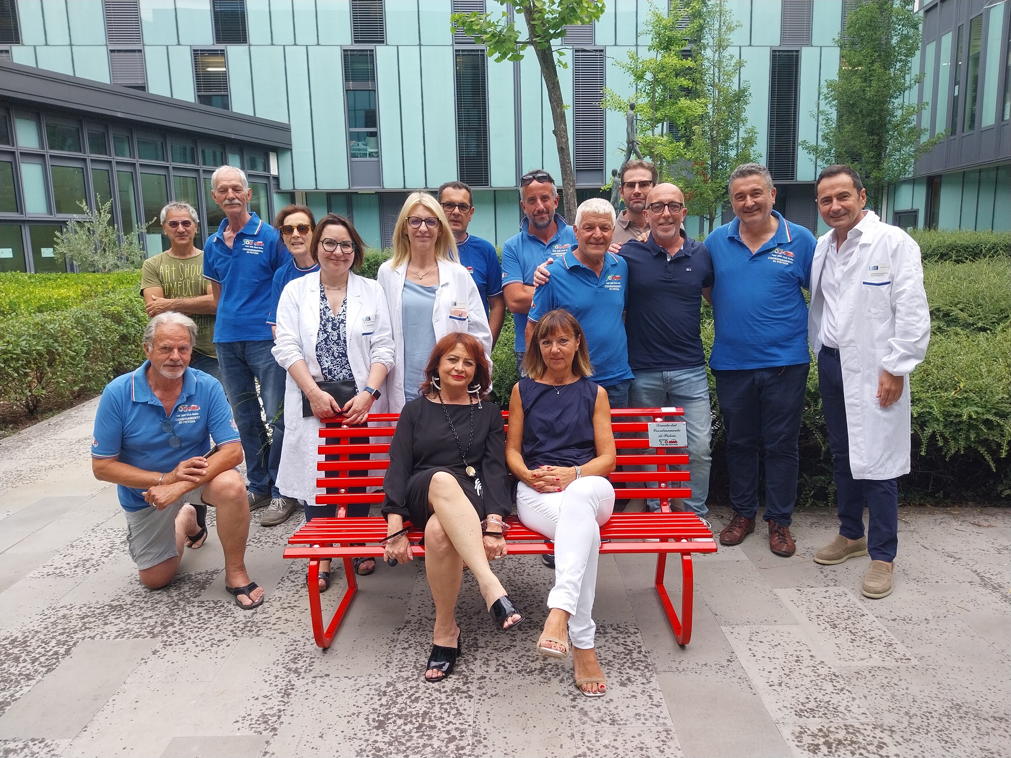 Nel cortile del San Jacopo una panchina rossa contro la violenza sulle donne. Donazione del Coordinamento di Pistoia del Fiat 500 Club Italia. Molto apprezzata l’attenzione al tema fuori dalle classiche ricorrenze