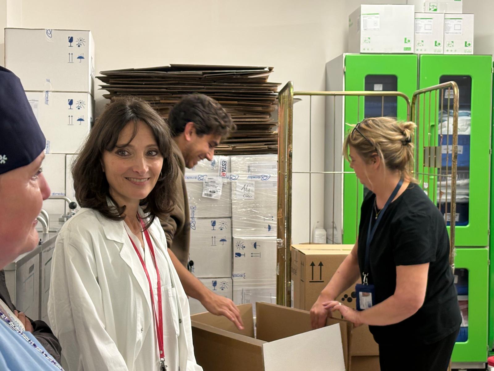 Visita anche alla SOC di Immunoematologia e Medicina Trasfusionale che nei primi sei mesi del 2025, ha già erogato 7784 prestazioni. Questo dato testimonia l'elevato volume di attività e l'importante ruolo svolto a supporto di pazienti con diverse patologie in particolare i pazienti oncoematologici che necessitano di supporto trasfusionale. La plasmaferesi terapeutica ad alta tecnologia, è un esempio concreto dell'avanzamento tecnologico del servizio, l'introduzione di nuove procedure ha, infatti, migliorato in modo significativo l'outcome dei pazienti ricoverati per patologie neurologiche e metaboliche complesse. Inoltre, l’implementazione di un sistema informatico unificato per tutti i servizi di Medicina Trasfusionale consente una gestione integrata e centralizzata dei dati.