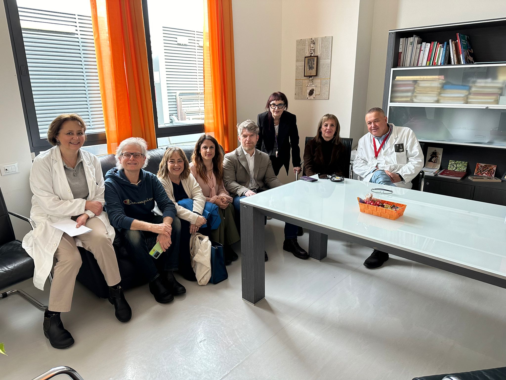 Nella foto 1, i dottori Mechi e Palumbo con il Gruppo multidisciplinare del nuovo Ambulatorio all'apertura insieme a: da sx Piersanti, Falcini, Molta di Aism, Grippo, Giorgi