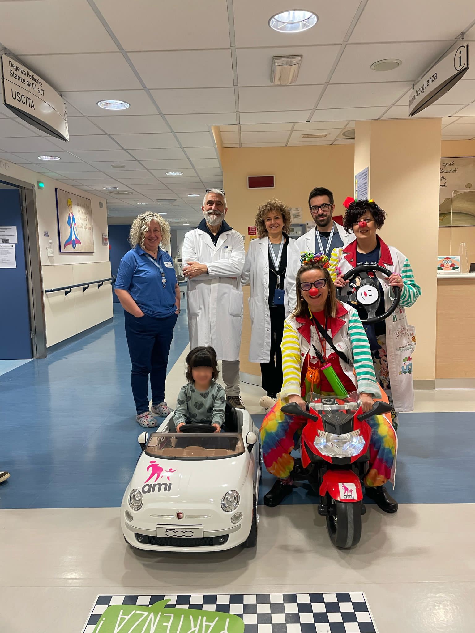 Riparte il progetto "A smiling road to surgery”, grazie alla collaborazione tra Fondazione AMI e i Clown di Vippo Prato: da sabato prossimo per i degenti del reparto pediatrico sarà nuovamente possibile varcare la soglia del blocco operatorio a bordo della microcar oppure in moto, entrambe super accessoriate con marcia e retromarcia, fari a led e display oltre al lettore mp3 per la musica. Sia la vettura che la moto sono entrambe radiocomandabili dal personale sanitario o dai genitori.
