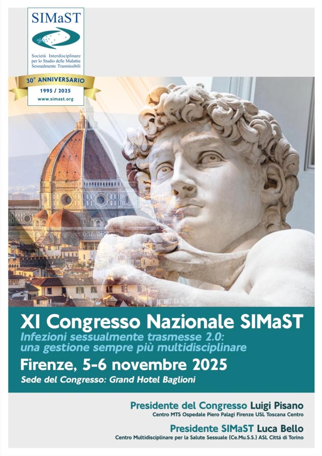 Firenze – Crescono in Italia i casi di malattie sessualmente trasmissibili (MST), una tendenza che preoccupa gli esperti e richiama l’urgenza di rafforzare informazione, prevenzione e diagnosi precoce. Se ne parlerà al XI Congresso Nazionale SIMaST (Società Interdisciplinare dello studio delle Malattie Sessualmente Trasmissibili), in programma il 5 e 6 novembre 2025 all’Hotel Baglioni di Firenze, appuntamento di riferimento per specialisti e operatori del settore.