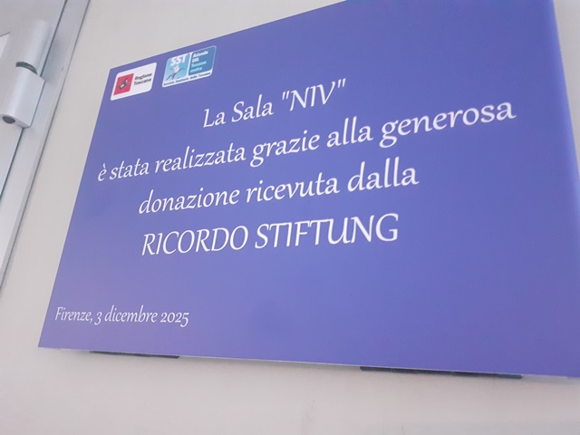 Firenze – La nuova sala NIV (Non-Invasive Ventilation) è stata allestita nel Day Service del reparto di Fisiopatologia Respiratoria dell'ospedale Piero Palagi, il presidio diretto da Ersilia Sinisgalli, grazie alla donazione di quattro poltrone, dispositivi medici e arredi sanitari per un valore di 88.935 mila euro. La donazione a sostegno della nuova attività arriva dalla “Ricordo Stiftung” legata al reparto, diretto da Walter Castellani, già da una precedente donazione, finalizzata sempre al trattamento di pazienti affetti da insufficienza respiratoria cronica riacutizzata. Scopo del progetto, ideato da Castellani, è quello di limitare gli accessi al Pronto Soccorso da parte di questa tipologia di pazienti che convivono da tempo con problemi respiratori e che, in certi momenti, hanno un peggioramento improvviso che rende loro difficile respirare e per questo possono aver bisogno di un supporto ventilatorio.