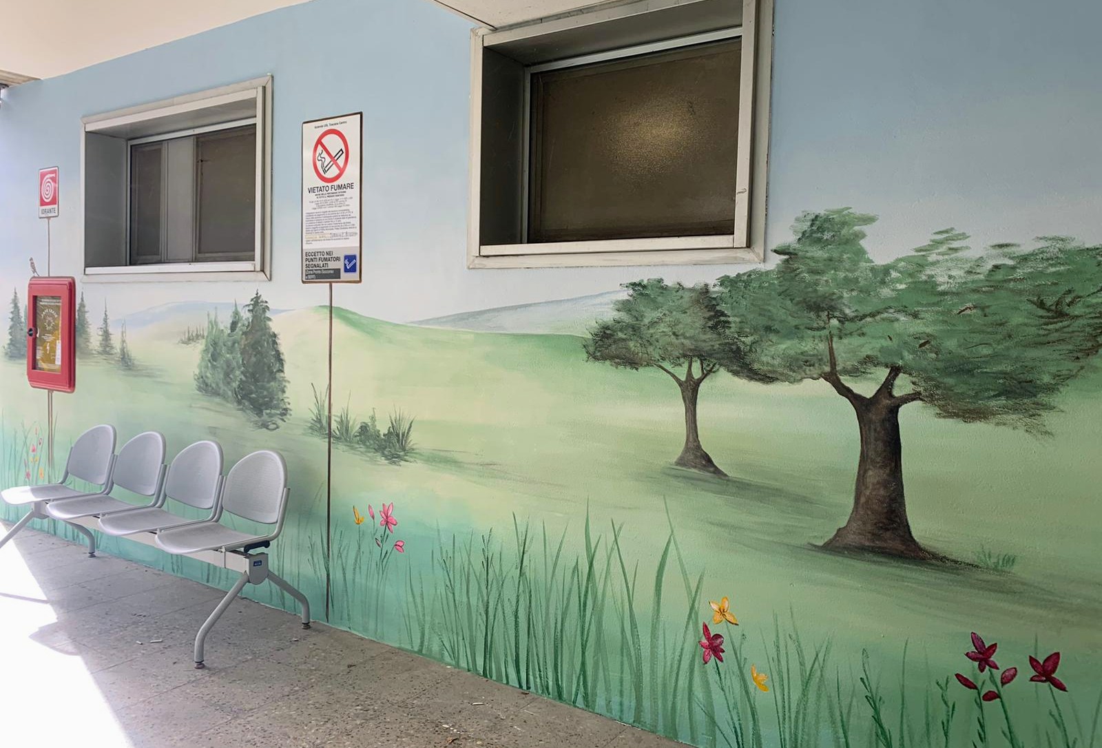 Per questa stessa ragione le decorazioni scelte per le pareti sono ricadute sulla tecnica del "trompe d’oeil", un genere di pittura che amplifica illusoriamente lo spazio di un ambiente. Il tema scelto per l'affresco e per l'umanizzazione dell'intero reparto è il paesaggio del Chianti, a sottolineare il legame con il meraviglioso territorio circostante l'Ospedale.