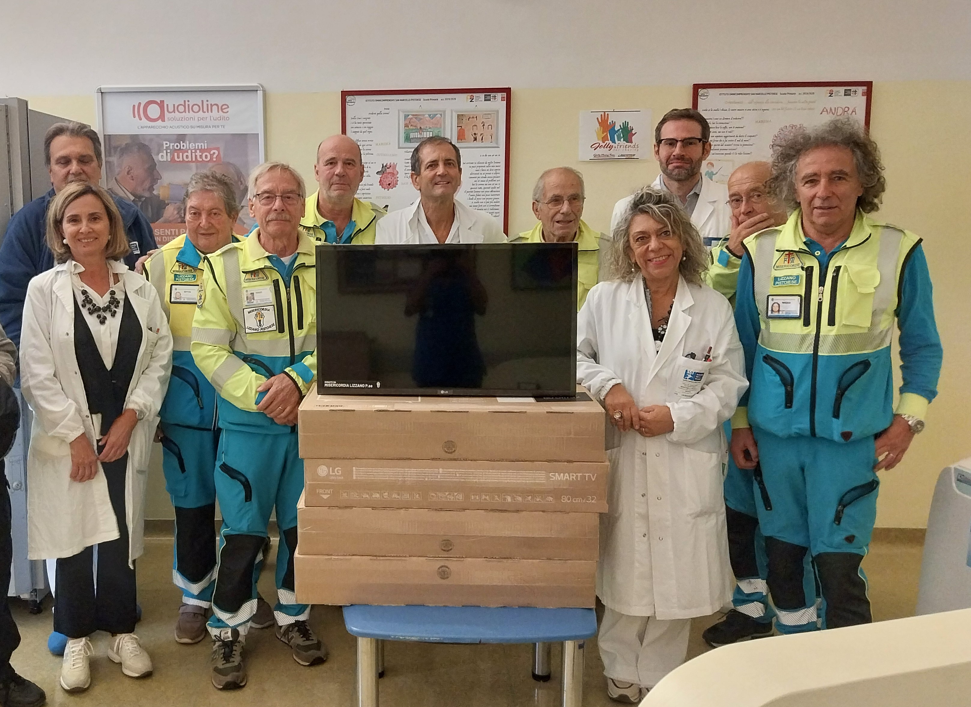 I nuovi televisori sono stati consegnati in questi giorni  da Claudio Iori, rappresentante dell’Arciconfraternita, alla presenza del dottor Leonardo Capecchi, della direzione sanitaria del presidio, della dottoressa Erica Gualtieri, referente della direzione infermieristica, del dottor Marco Frati, direttore della SOS Medicina Interna e del dottor Giuseppe Daniele, coordinatore infermieristico Medicina Interna.