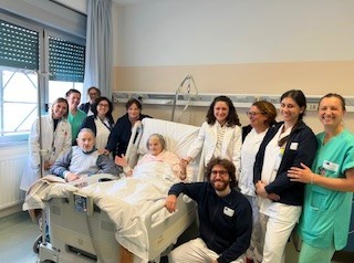 Ricoverati in reparti diversi, lei in Geriatria e lui in Ortopedia 3°settore, i due coniugi hanno espresso il desiderio di potersi rivedere e sostenere a vicenda. Il personale sanitario, con grande disponibilità e sensibilità, ha accolto la richiesta organizzando un incontro e accompagnando la signora Franca dal marito. È stato un momento intenso, fatto di emozioni che ha restituito loro la serenità di sentirsi ancora insieme.