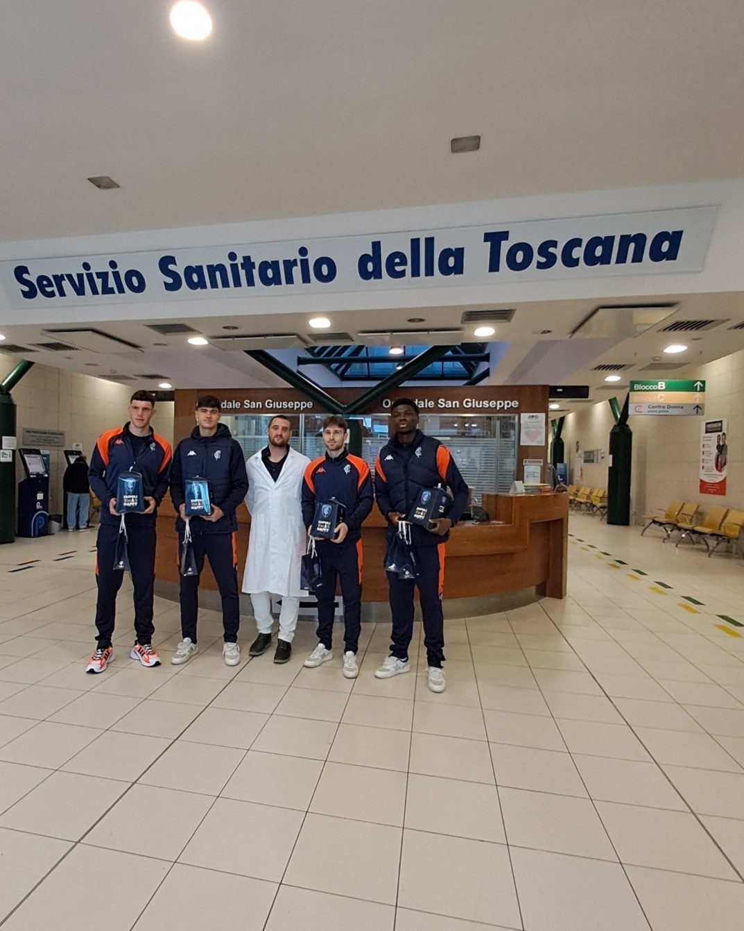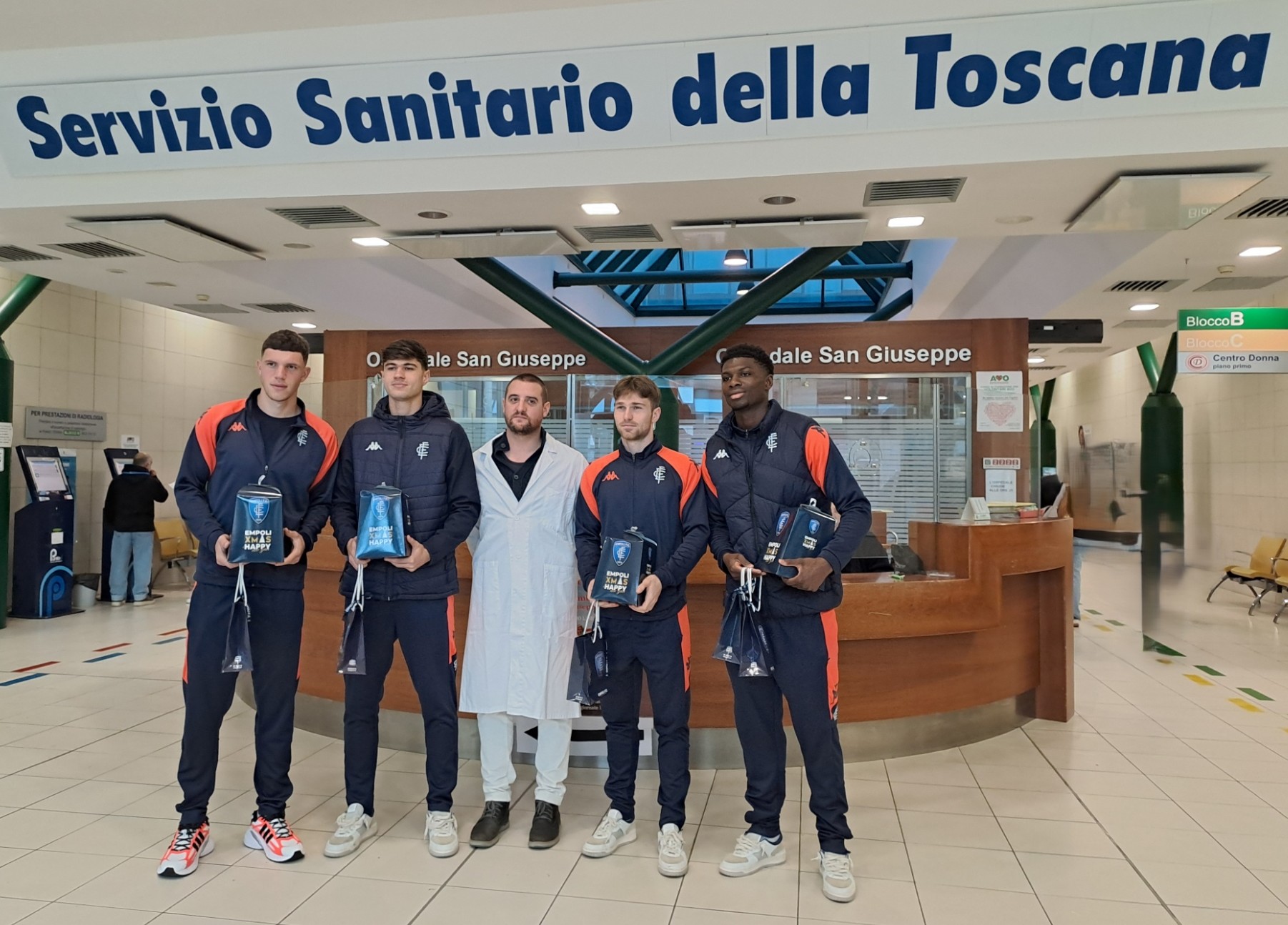 EMPOLI - Una mattina diversa, fatta di sorrisi e di maglie azzurre, ha animato la Pediatria - e non solo - dell’ospedale San Giuseppe di Empoli. Una rappresentanza dell’Empoli FC 1920 ha fatto visita oggi ai piccoli ricoverati portando doni semplici ma molto attesi: cappellini di lana per bambine e bambini e piccoli panettoni da portare a casa per le feste. Per il reparto anche una maglia ufficiale dell’Empoli, consegnata incorniciata come segno di vicinanza e riconoscenza.