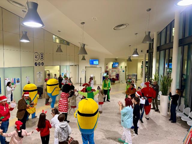 Pistoia – Un pomeriggio di spensieratezza e allegria ha animato la hall dell’ospedale San Jacopo di Pistoia grazie allo spettacolo “Christmas Tour 2025”, portato in scena dall’Associazione Ridolina. Musica dal vivo, palloncini colorati, magie, gag improvvisate e la presenza dei personaggi dei cartoon, insieme a Babbo Natale, hanno regalato sorrisi ed emozioni ai piccoli pazienti della Pediatria e alle loro famiglie. All’iniziativa ha partecipato anche il gruppo del Carnevale di Veneri, contribuendo a rendere l’atmosfera festosa e coinvolgente.